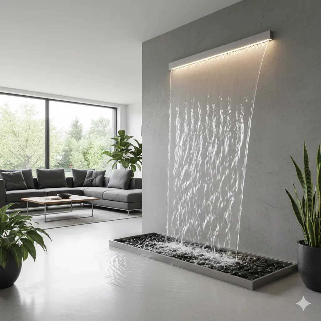 - Wall-mounted glass waterfalls for a sleek, contemporary look